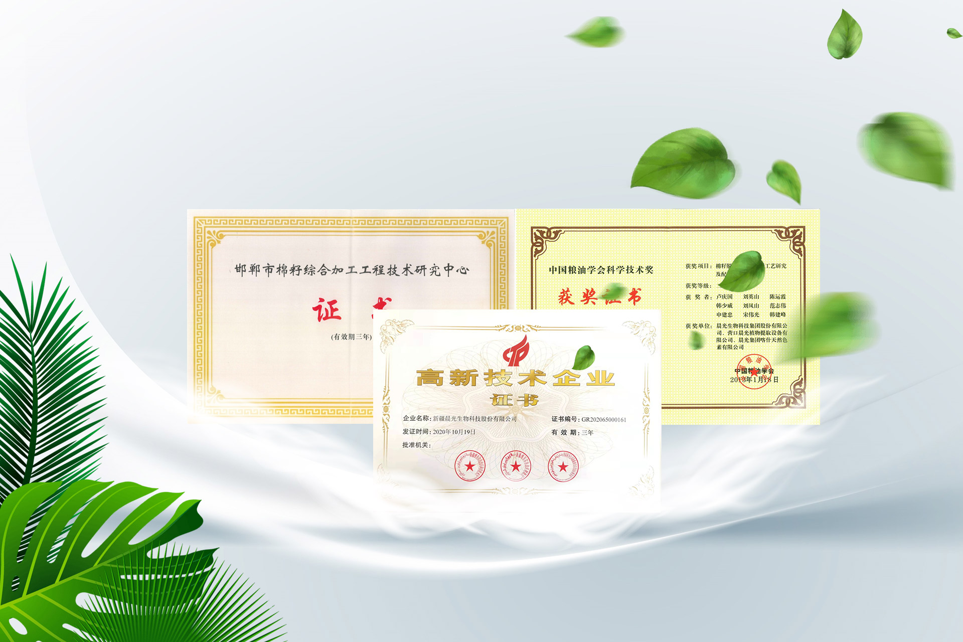 自主知識(shí)產(chǎn)權(quán)的專(zhuān)利93項(xiàng),其中發(fā)明專(zhuān)利18項(xiàng),實(shí)用新型專(zhuān)利75項(xiàng)。參與制定了國(guó)家供銷(xiāo)合作行業(yè)標(biāo)準(zhǔn)GH/T 1262—2019(棉籽殼)、國(guó)家農(nóng)業(yè)行業(yè)標(biāo)準(zhǔn)(棉籽品質(zhì)快速測(cè)定 近紅外法)